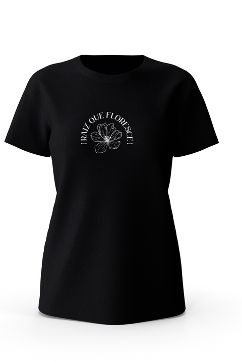 Com design delicado e significativo, a estampa traz a frase “A Raiz que Floresce” acompanhada de uma flor minimalista, representando crescimento, renovação e firmeza em Deus. Uma mensagem sutil, mas poderosa, ideal para mulheres que vivem sua fé com leveza e profundidade.
